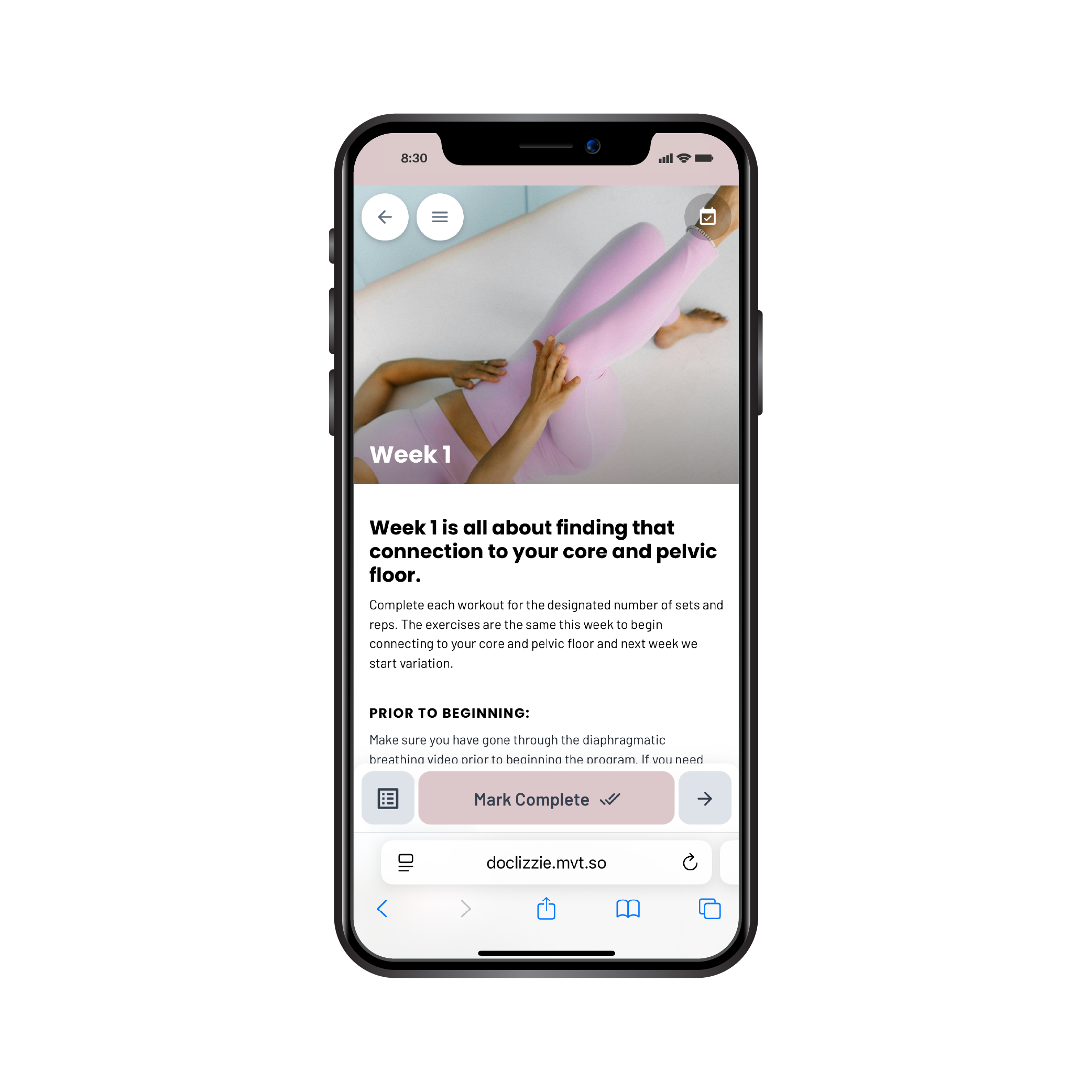 postpartum, prenatal, and weekly workout programs taught by a pelvic floor physical therapist